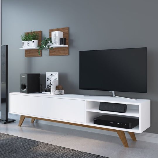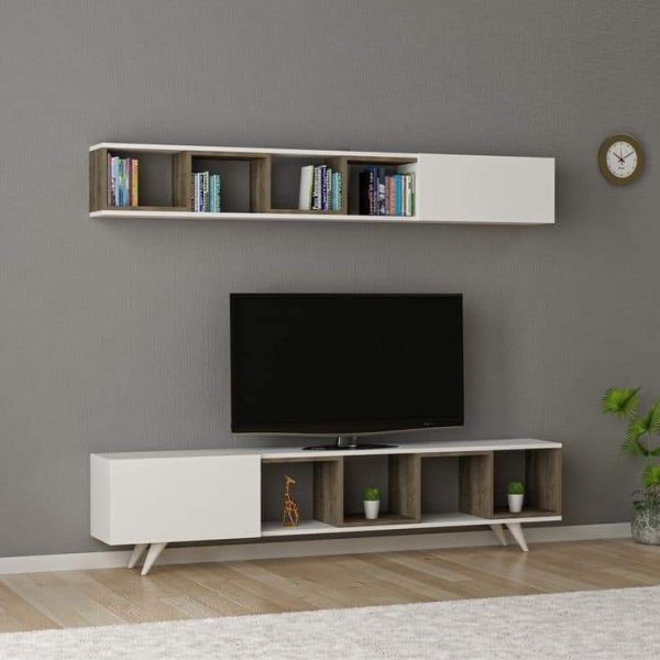 وحدة تليفزيون مع أرفف علوية 30×180 سم – بيج أبيض – TV059