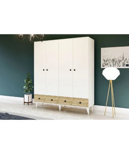دولاب ملابس 4ضلفة 220×160 سم – ابيض بيج – DHL-08