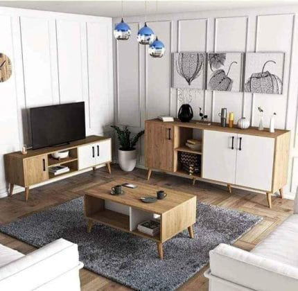 طقم كامل بوفية و ترابيزة قهوة و ترابيزة تلفزيون 160- أبيض مع بيج – set02