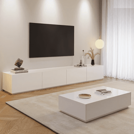طقم كامل بوفية و ترابيزة قهوة و ترابيزة تلفزيون 180- أبيض مع بيج – set01