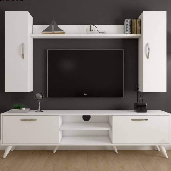 وحدة تليفزيون مع أرفف علوية 30×150 سم – أبيض – TV060