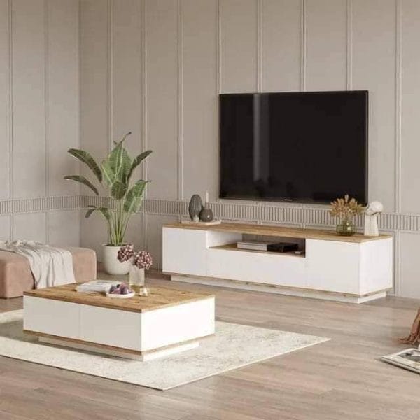 طقم قطعتين ترابيزة قهوة و ترابيزة تلفزيون 180- أبيض – TV-351